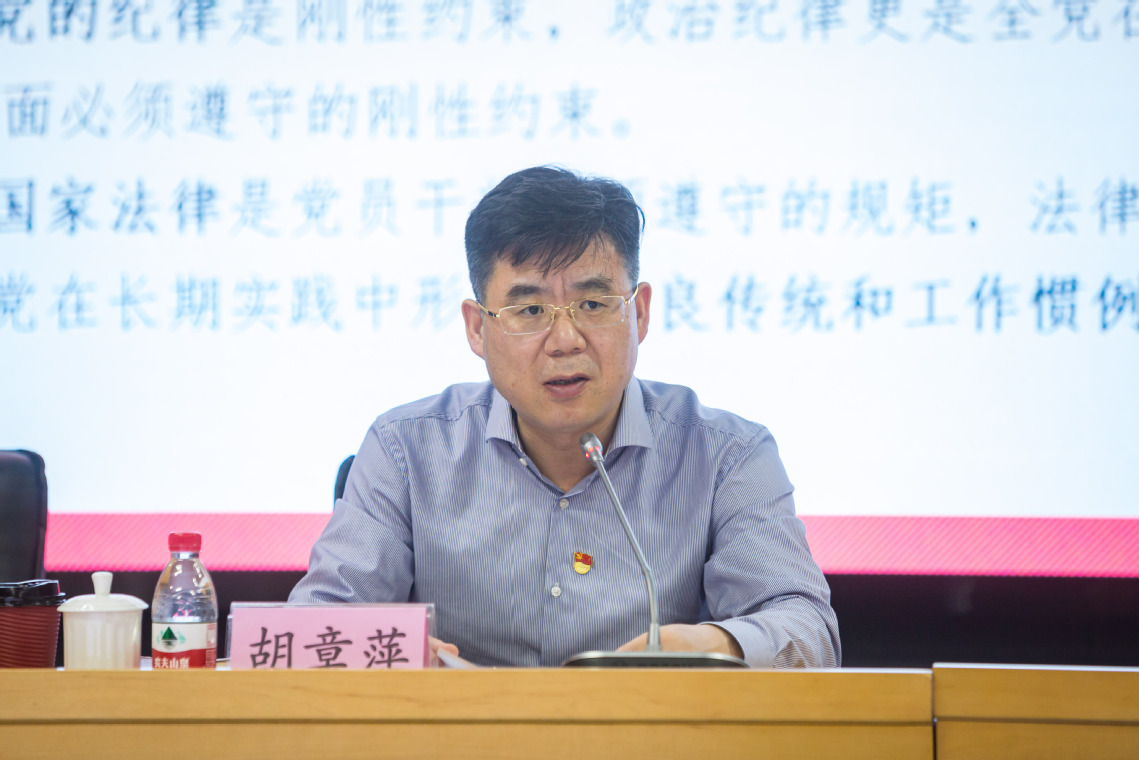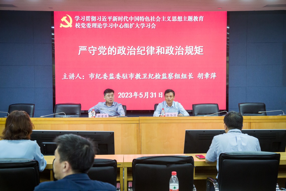 20230531 主题教育党委中心组扩大学习会举行 胡章萍应邀作严守党的政治纪律和政治规矩专题报告